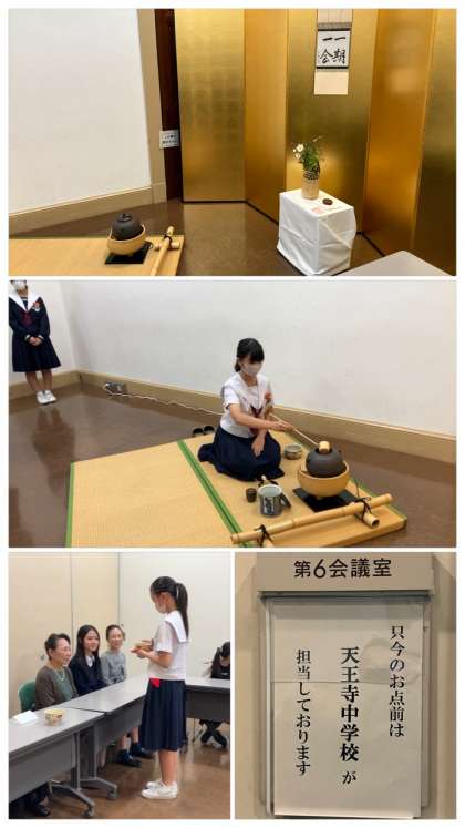 天王寺中学校からは、社会、理科、美術、技術・家庭科の作品の展示をはじめ、合唱部の舞台発表や茶道部のお点前、技術工作部によるロボットコンテストのデモンストレーションなどで参加しました。