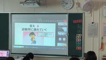 被災直後の対応や、避難時の注意点などについて、クイズも交えながらワークシートを用いてテンポよく進められていました。