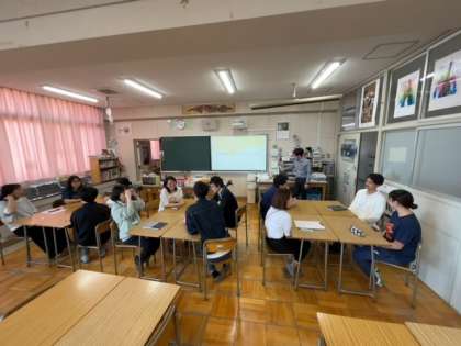 一方で、放課後学習会が開催されている同じ5階の美術室では、若手の先生方を中心として研修会が行われています。
