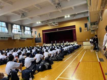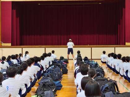 体育館での出発式の様子です。
