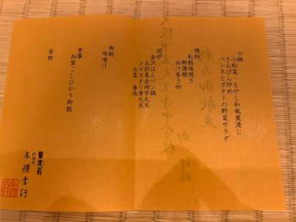 昨日の夕食に引き続き。朝食にもお品書きが準備されていました。