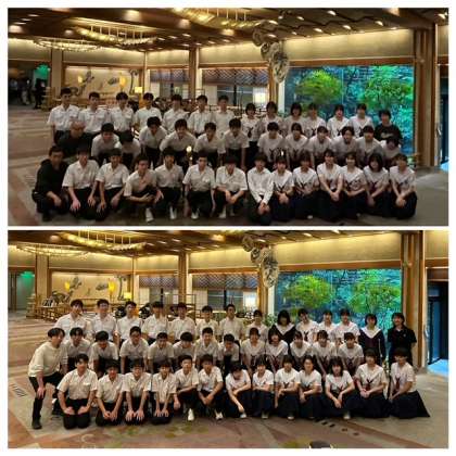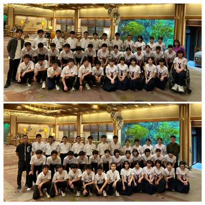 宿舎を出発する前に、素晴らしいロビーで学級写真を撮りました。