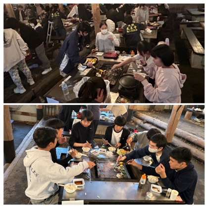 入館式の後は、いよいよお肉食べ放題のバーベキューです。