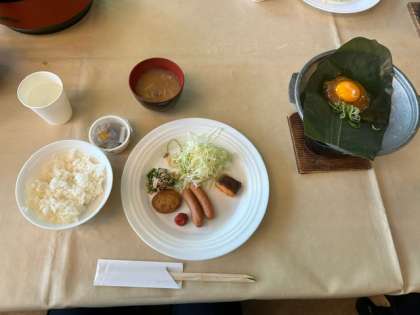 今朝の朝食には、郷土料理の朴葉味噌がついています。