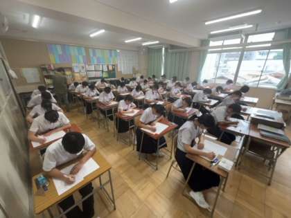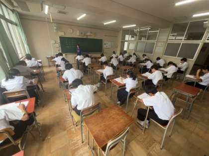 1年生は数学と保健体育、2年生は数学と技術・家庭科、3年生は数学と技術・家庭科、そして美術のテストに取り組んでいます。