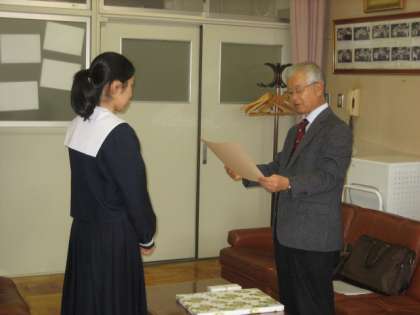 中学生「税についての作文」に三年生131名が応募しました。その中で3-2の須藤さんが、「近畿納税貯蓄組合総連合会長賞」を受賞しました。おめでとうございます。