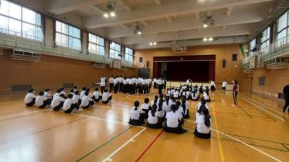 10月28日(月)、当初は1・2限目で全体練習を予定していましたが、雨天でグランドの状態がよくないため、体育館と多目的室を使って種目ごとに招集練習を行いました。