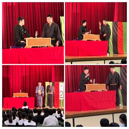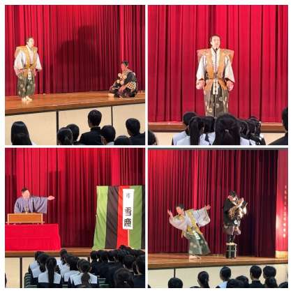 途中に体験コーナーもあり、代表生徒が高座にあがって演じると大爆笑になる場面もありました。