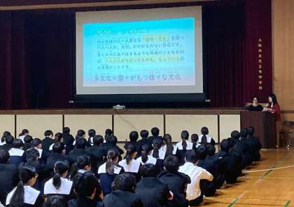 また、外国から天王寺中学校に転入生がやってきた際、受け入れる側と受け入れられる側の両視点で考えたとき、「自分たちにできる最善の行動は何か?」を考えました。