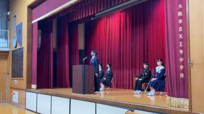 4月14日(月)、全校集会に引き続き、前期生徒会役員選挙に伴う立会演説会が行われました。
