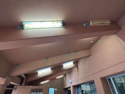 宿舎の体育館の軒下には、たくさんのツバメの巣があります。
