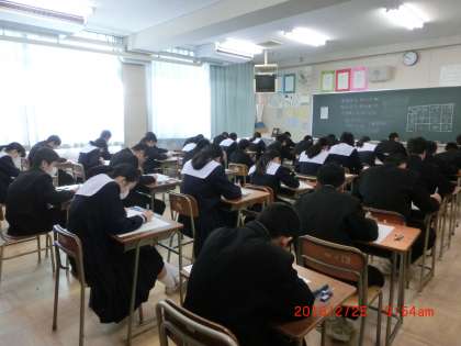 1・2年生の学年末テストが昨日から始まり、今日2日目は国語と社会に加えて、1年生は音楽のテストを受けました。今年度1年間の総まとめとして実施されたテスト。真剣な面持ちで問題に向かう姿がとても頼もしくなっていました。