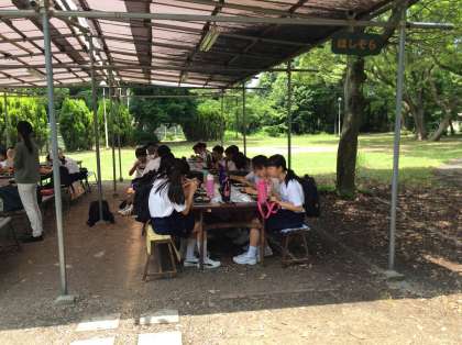 自然の中で、最後のお弁当を、おいしくいただいています!