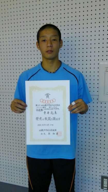 8月9.10日に和歌山県立橋本体育館で近畿大会バドミントンが行われた。10日の男子シングルス個人戦で寺井彪真君(3年)が準優勝となった。17日〜20日に石川県金沢市で行われる全国大会に出場することになった。