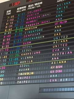 スイス発の飛行機が1時40分ほど遅れ、到着が遅れましたが、成田空港にに無事到着しました。この後、羽田空港から大阪へと向かいます。
