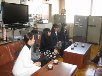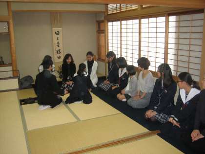 歓迎集会後、生徒の皆さんは各学級へ、先生方は学校内を見学していただきました。放課後は、茶道部のお点前で「おもてなし」なごやかな雰囲気の中で茶道体験をしていただきました。