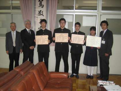 平成28年度中学生の「税についての作文」に三年生128名が応募しました。その中で、清水祐磨さんが「納税貯蓄組合大阪府連合会長賞」、西川倫さんが「天王寺区長賞」、北山太陽さんが「天王寺納税貯蓄組合連合会長賞」、蜷川丈士さんが「公益社団法人天王寺納税協会長賞」を受賞しました。おめでとうございます。