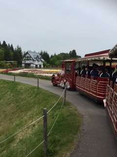 選択体験学習の「牧歌の里」コースは早くも到着し、園内を観光トレインでまわっています。