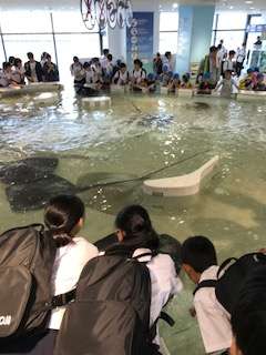 海遊館での学習の終盤、海の生き物に素手で触れることができました。