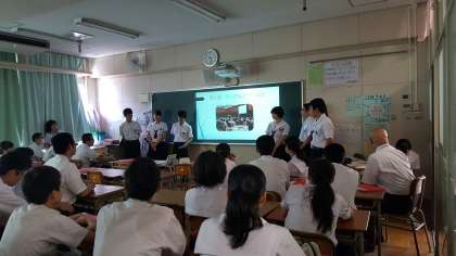 土曜授業3年生は、「修学旅行報告会」をクラスで班ごとに発表しました。