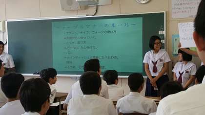 ラフティングや上高地、高山散策、コース別体験やテーブルマナーや食事、レクレーションと6つのテーマについて発表しました。