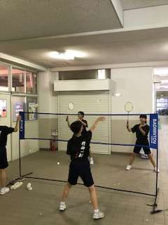 バドミントン部は、体育館の割り当てのない時間は、廊下の少し広いスペースを使って練習しています。