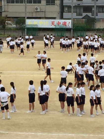 体育大会、当日にむけて全体練習をしました。