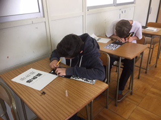 勘亭流で書かれた自分達の名前「ジョエル→如恵留」「ヨナス→誉名須」の切り絵を作っていました。