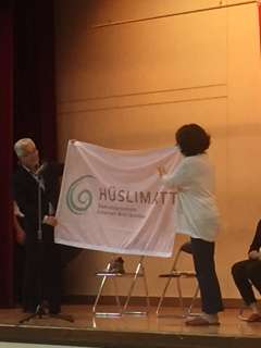 また、オーバーヴィル中学校からは、アンティークのベルと、校旗をいただきました。
