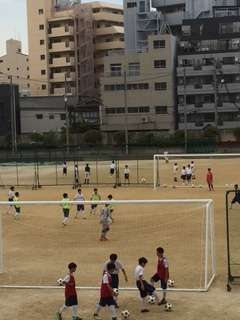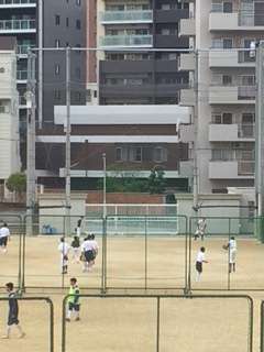写真はグラウンドで活動中の、野球部とサッカー部の様子です。