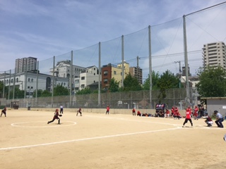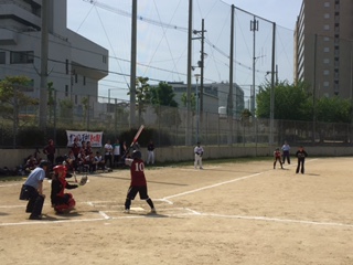 五条グラウンドで行われているPTA女子ソフトボールの春球会は、1回戦夕陽丘中学校に快勝、次の大江小学校に対してもサヨナラ勝ちをおさめ、見事、決勝進出を果たしました。