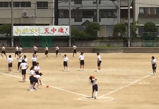 今年度も、体育の授業で新体力テストが行われています。今日の3年生の授業では、男子が持久走(1,500メートル)、女子がハンドボール投げと立ち幅跳びを行なっていました。