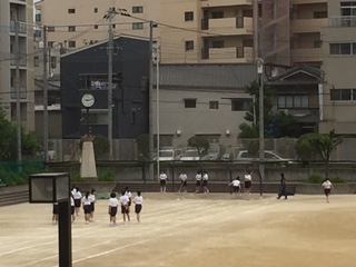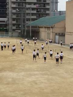 2年生の体育の様子です。男子はハードル、女子は走り幅取りをしています。