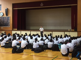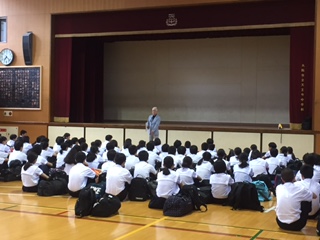 今朝7:15に体育館に集合し、出発式が行われています。
