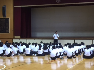 昨日修学旅行から帰ってきた3年生は元気に登校しています。1時間目、健康観察と学年集会を体育館でおこなっています。修学旅行での活動などを振り返っています。今日この後は授業になります。