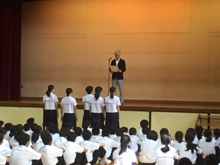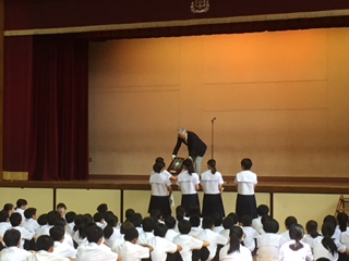 今週末行われた大阪市の総体の結果を受け、陸上部が全校集会で表彰されました。