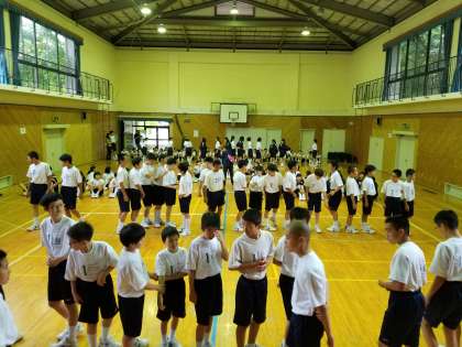 「いっせいのでぇ〜」の掛け声が体育館に響いています。