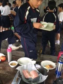 朝の集いのあとは、みんなで協力しての朝ごはんの準備です。