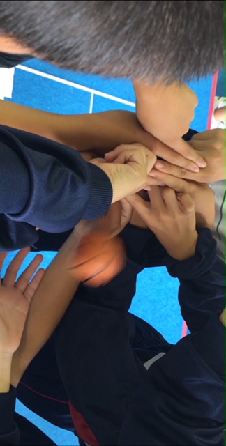 このクラスでは、班ごとにボールパス、キャッチを1秒以内に行うゲームをしていました。