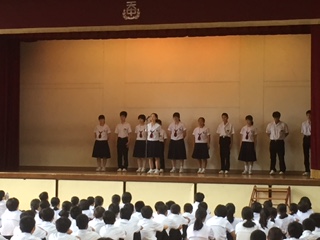 6月11日(月)、全校集会の中で専門委員会報告がありました。各委員会から今月の目標や活動内容の報告がありました。それぞれ目標を意識をして取り組んでいきましょう。