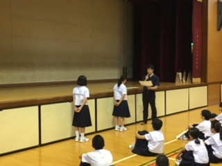 6月20日(水)、本日の学年集会で一泊移住中に行われた大縄大会や室内オリンピックなどの結果を表彰しました。