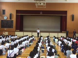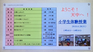 期末テストの午後を利用して、小学生の体験授業が行われました。天王寺中学校校区の3小学校6年生が本校に来校。50分の中学校の授業を体験してもらいました。