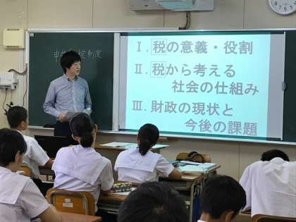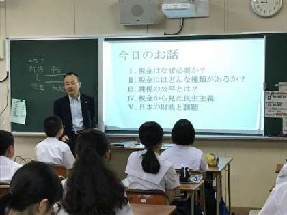 3年生の社会科の授業の一環として、近畿税理士会の税理士の方々に、「税」についての授業=「租税教室」を実施していただきました。