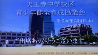 7月4日(水)19:00〜、本校多目的室において、天王寺中学校区 青少年健全育成協議会が行われました。
