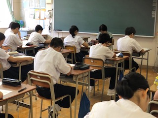 本日の1時間目学活、3年生は10月の音楽コンクールに向けて、自由曲決めをしていました。天中最後の音コンで、10曲の候補曲の中から自分のクラスとしてどの曲を選ぶのか。聞く態度も真剣です!