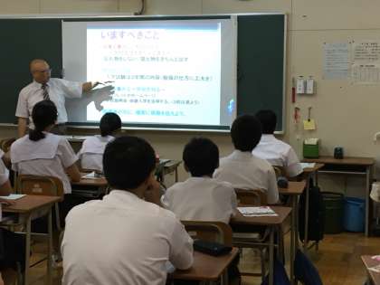 公立と私立の違い、専願と併願の違い、公立高校の合否判定の方法、公立高校は「アドミッションポリシー」に沿った「自己申告書」を書くことなど、進路指導主事から説明されました。