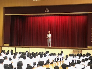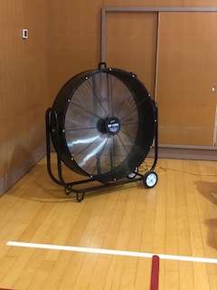 暑い中での終業式でしたが、扇風機を回して式を行いました。(業務用の大きな扇風機も新たに購入しました。)