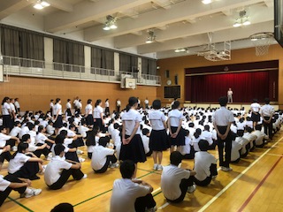 終業式の中で歯科表彰も行われました。これは学校歯科医の小室先生から歯科検診で口腔ケアが優れていた生徒に贈られるものです。3年連続で優秀だった3年生の男子が代表して表彰されました。校医の小室先生、いつもありがとうございます。