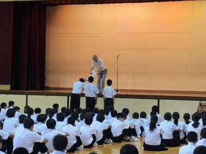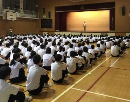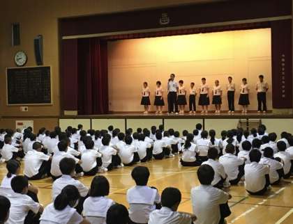 本日の全校集会では、スイス姉妹校派遣から帰国された校長先生による2学期最初のお話がありました。昨日の台風のこと、スイス姉妹校派遣のこと、明日のチャレンジテストのこと…内容は多岐に渡りました。そして夏休みの頑張りを学校生活の中で出していってほしいというお話でした。