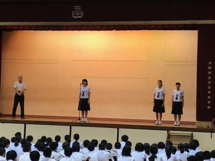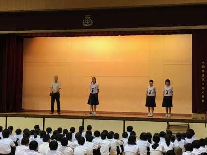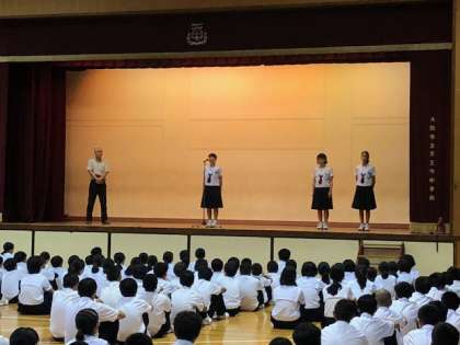 今年の夏休み「第19回 日本・スイス青少年交流使節団」として3年生の女子生徒が、また 本校の姉妹校である「オーバーヴィル中学校」へ3年生と2年生の女子生徒が、共にスイスに派遣されました。今日はその報告・感想を、全校集会の中で一人ずつ話してもらいました。